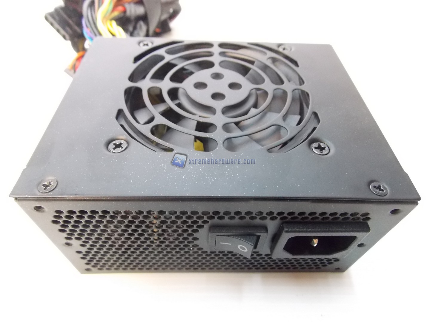 Il modello è certificato da Ecova secondo lo standard 80 Plus Gold, e quindi come avente un’efficienza pari o superiore all'90%, con un carico del 50%. Un elevato valore di quest’ultimo parametro permette un minore consumo elettrico, ovvero un minore spreco di corrente in calore, e quindi un inferiore costo della bolletta elettrica alla fine del mese; ciò consegue un’operatività più silenziosa dovuta al minore calore generato ed infine la consapevolezza di avere un prodotto decisamente più rispettoso delle problematiche ambientali inerenti allo spreco di energia elettrica, per quanto poco possa contare tale considerazione per un utente domestico. Premesso ciò, il telaio è identico ai modelli recensiti in precedenza, delle serie SFX, sebbene però posteriormente siano assenti le terminazioni per i connettori modulari. L'unità infatti non è modulare, come è evidente del resto dalle fotografie.