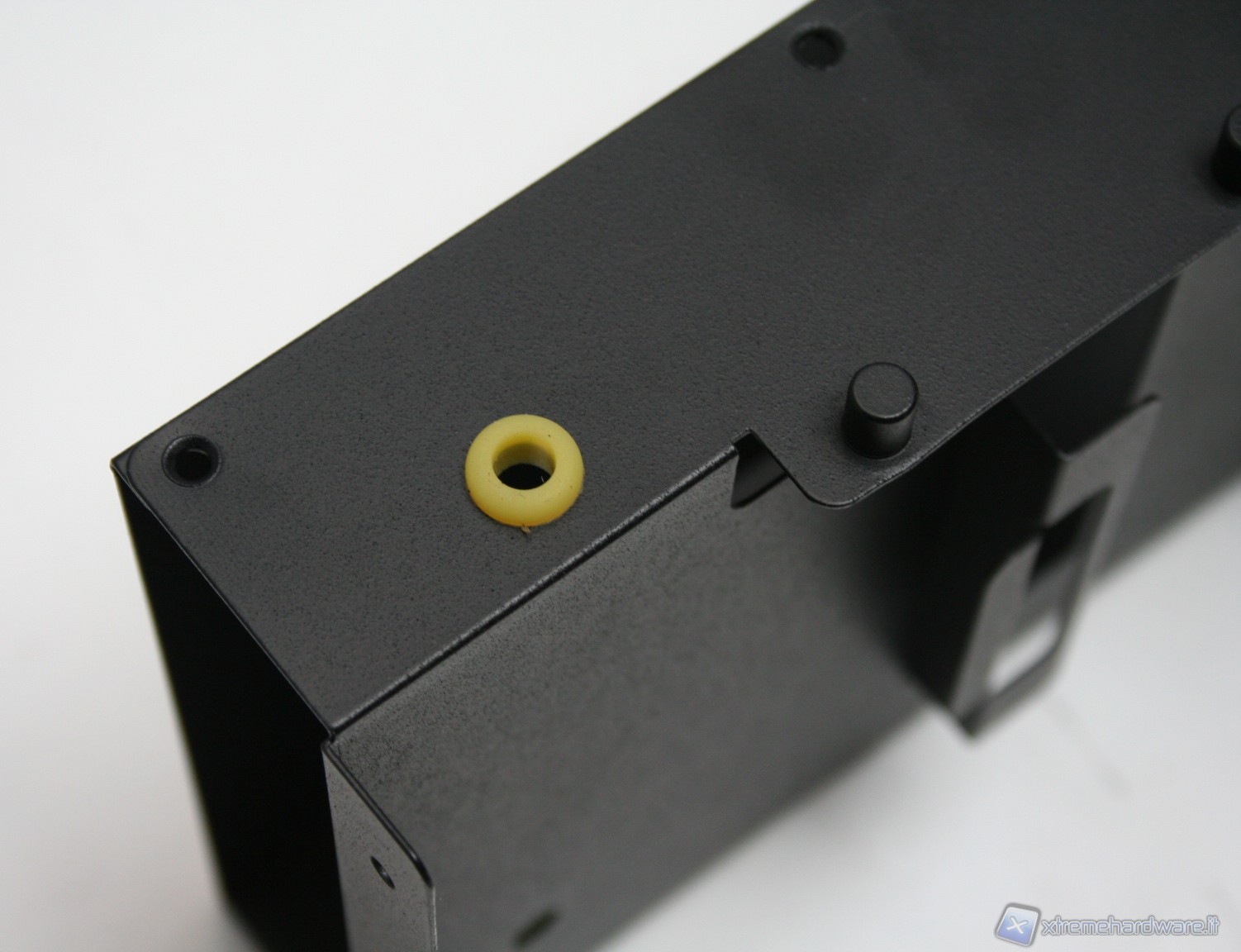 Sul fondo è presente la griglia di areazione per l’alimentatore, con un filtro che potrà essere rimosso svitando 4 viti. Il pannello frontale dell’SG-08 poggia direttamente a terra in tutta la sua lunghezza; SilverStone ha applicato delle strisce di gomma al fine di eliminare qualsiasi vibrazione. La parte posteriore poggia invece attraverso due piedini in gomma.