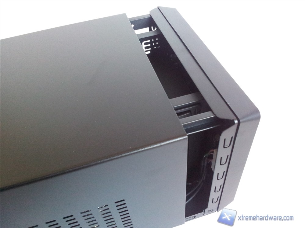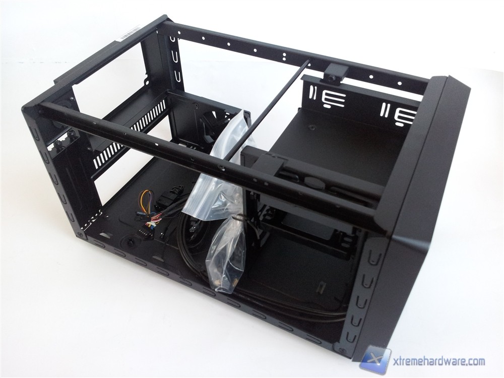 La piastra della scheda madre presenta quattro fori per il montaggio di schede madri in formato mini-ITX, sopra di essa andrà montato l'alimentatore che, come detto in precedenza, dovrà essere in standard ATX.
