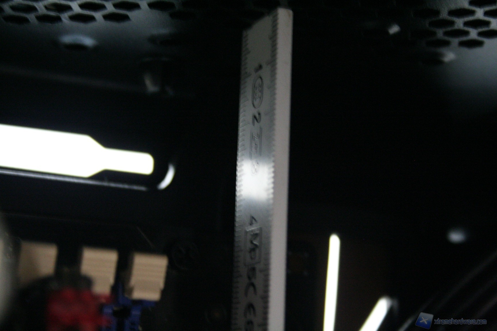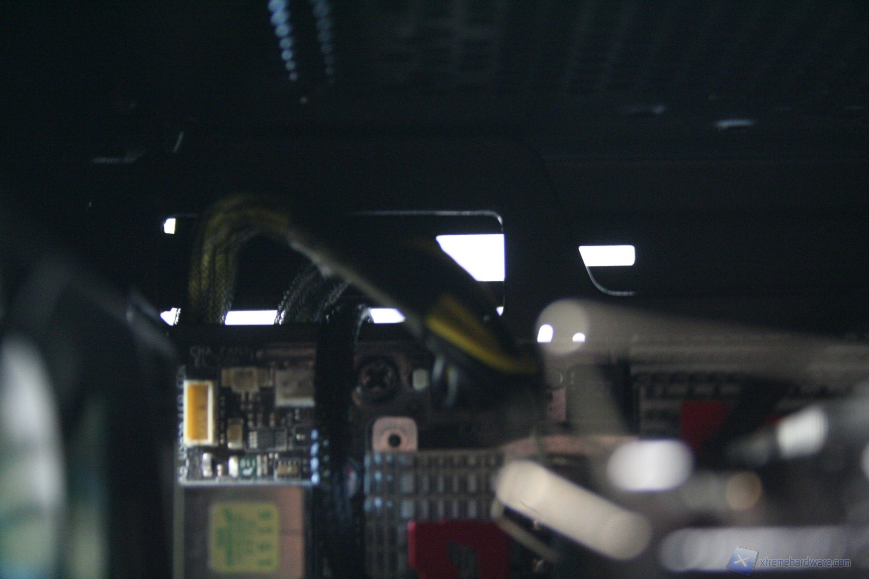 Dietro allo sportello superiore è stato integrato un fan controller a due canali che permetterà di regolare in modo abbastanza preciso fino a 6 ventole. Il cabinet ne potrà ospitare fino a 7: oltre alle 3 preinstallate è possibile montarne 2 sul tetto, una sulla paratia laterale e una sul fondo (sia da 120 che da 140mm).