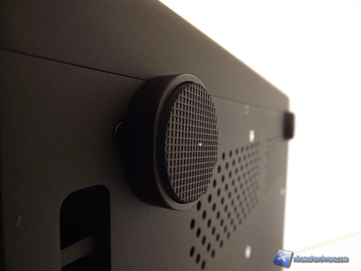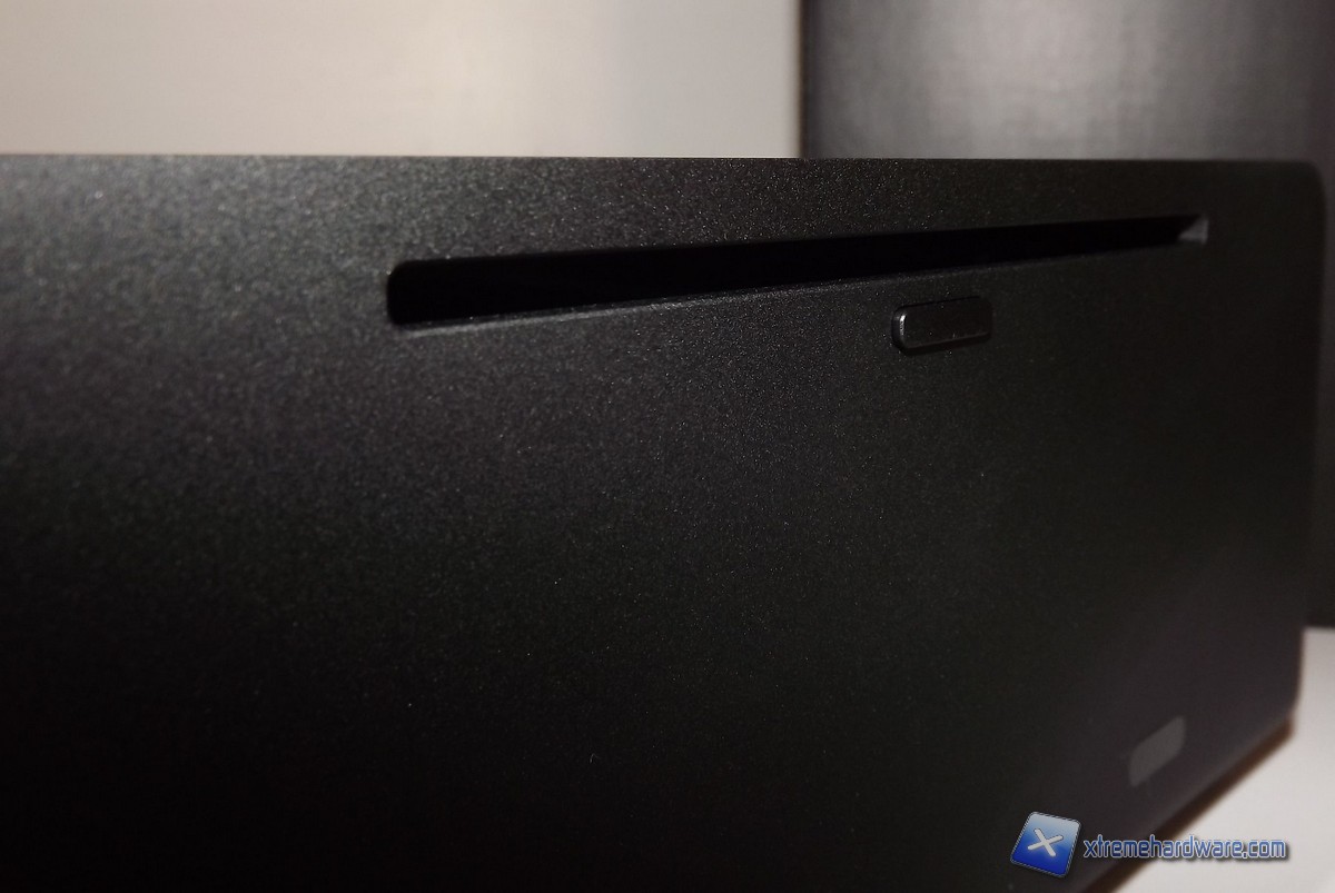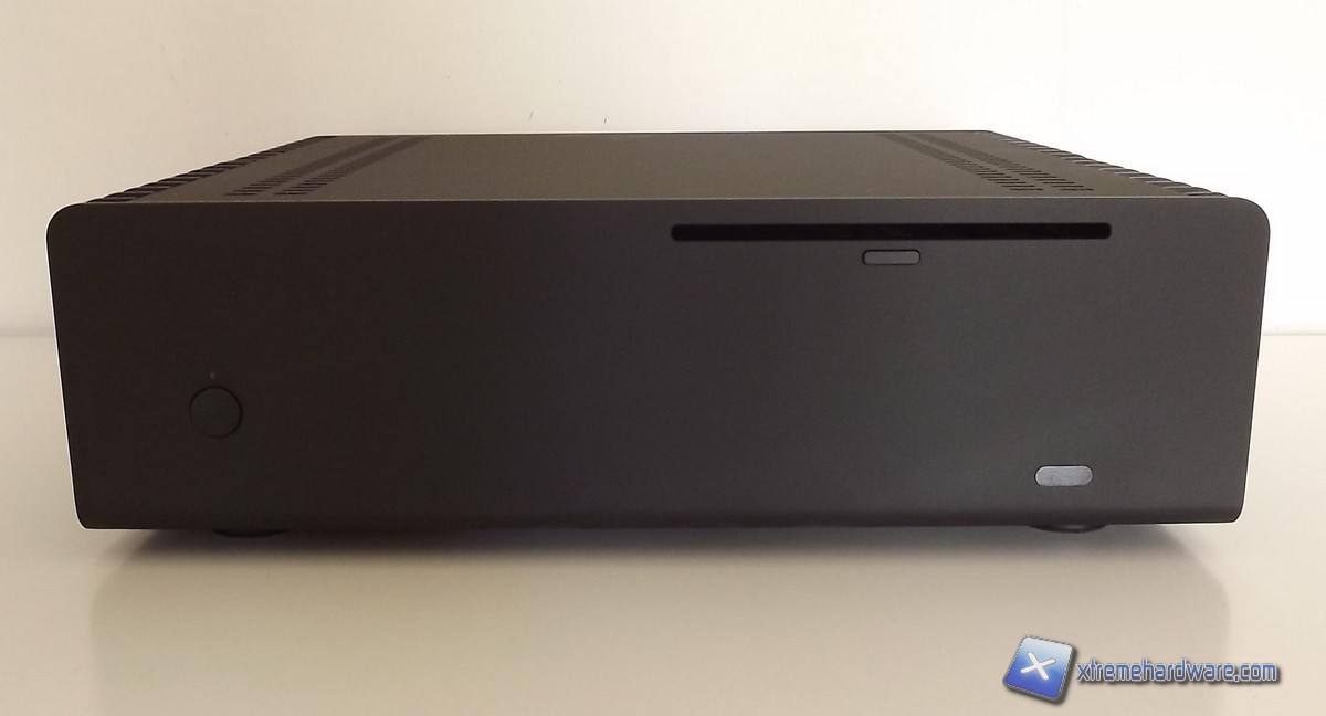 Il frontale, come abbiamo avuto modo di apprezzare per gli altri prodotti, si presenta semplice e sobrio, sono presenti il pulsante di accensione, il Power Led ed una finestra per il ricevitore IR. Infine nella parte superiore notiamo un'ulteriore fessura per l'inserimento di unità ODD di tipo slim ed il pulsante Eject. Non si può fare a meno di notare che non sono presenti serigrafate loghi o altri tipi di caratteri proprio per preservare la sobrietà del frontale.