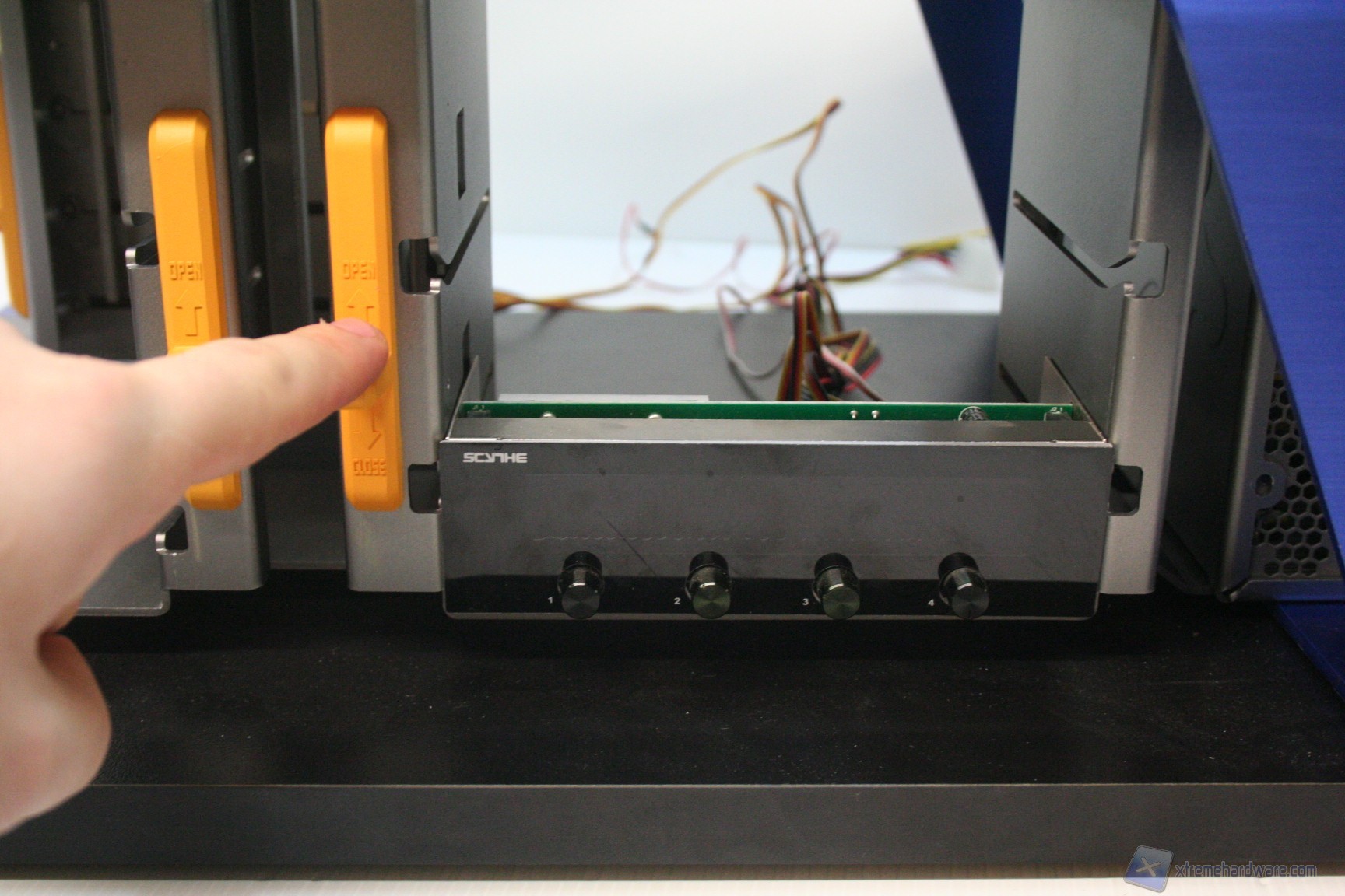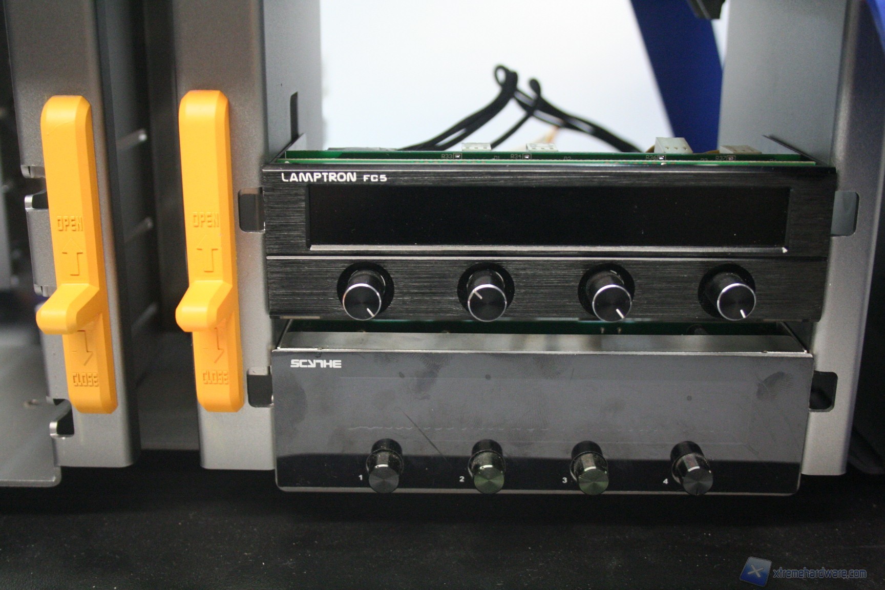 Nonostante quindi non siano presenti gli HS, è molto facile montare un hard disk e sostituirlo. L’isolamento vibrazionale è discreto, per via del fatto che non sono presenti gommini; comunque sia, anche questo elemento, se vogliamo è relativo perché ormai si utilizzano dischi rigidi che non presentano eccessive velocità di rotazione, quindi è secondario (7200RPM vs 15000RPM SCSI). La dissipazione è standard data l’assenza di una ventola dedicata. La rigidità delle periferiche, data la struttura in acciaio, è elevata e non è possibile configurare modularmente i cage per gli hard disk. Facciamo presente che comunque non c’è nessun supporto per SSD ed unità HDD da 2.5”, sebbene comunque sia possibile acquistarle separatamente. In merito alle periferiche da 5.25” vale lo stesso discorso e sarà anche possibile installare modelli di fan controller aventi un display leggermente più spesso degli altri; precisiamo infatti che il modello Lamptron FC5V2 è stato leggermente problematico ed è stato possibile serrarlo solo a metà, per via della collisione parziale con il meccanismo di blocco. E’ un discorso relativo perché comunque si è serrato bene e l’eventuale spostamento verticale non ne comprometterà la solidità.