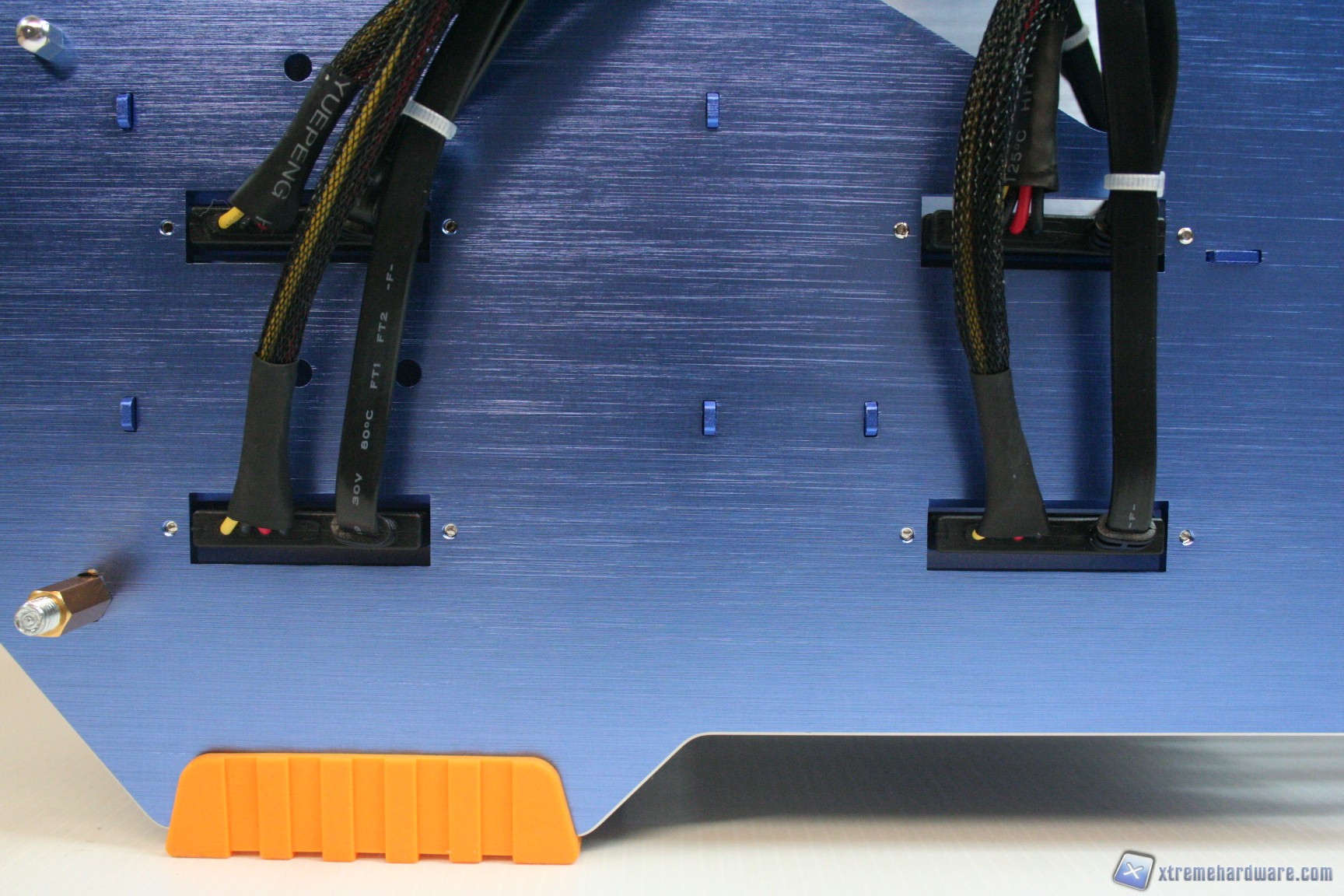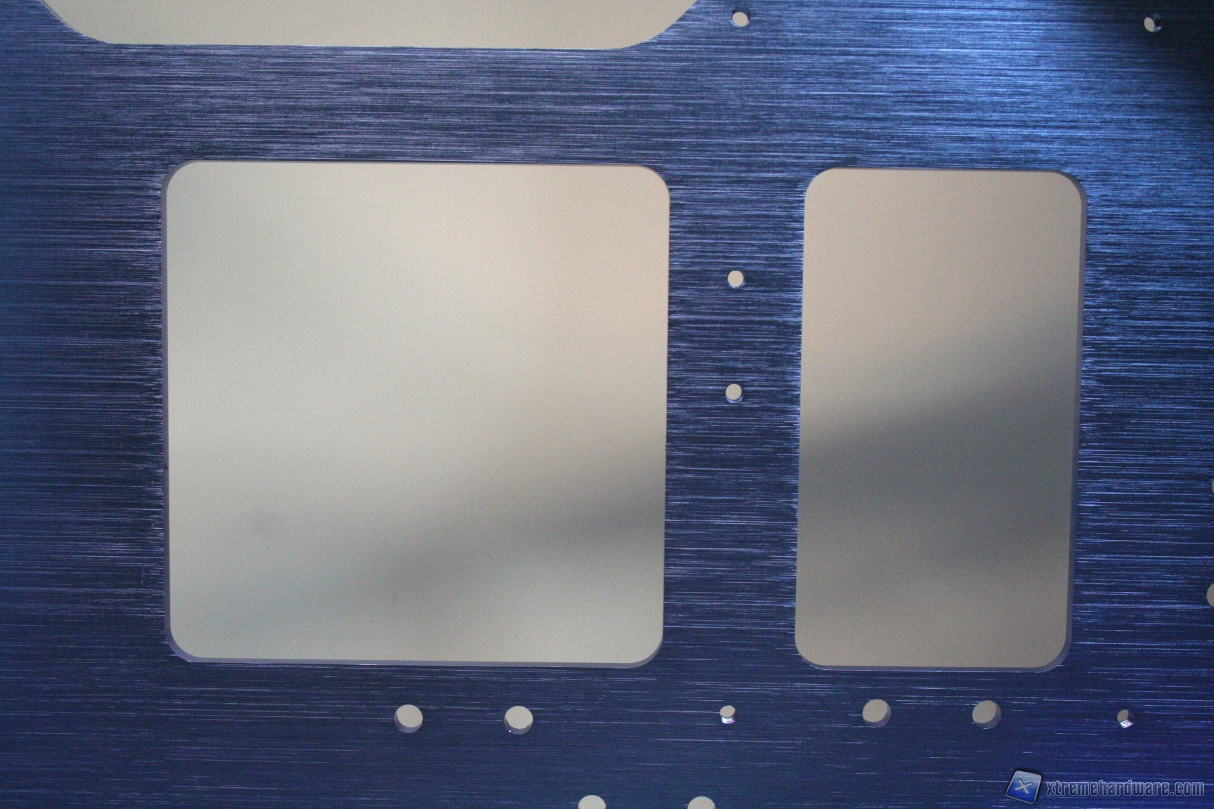 La robustezza della struttura è semplicemente eccelsa, come lo è la rigidità in prossimità delle uscite PCI, che risulta molto elevata. La qualità del piatto è quindi molto buona e lo spessore di quest’ultimo eccezionalmente elevato, dato che è anche in alluminio; sono presenti sei fori per il passaggio dei cavi all’interno del piatto ed una protrusione laterale per facilitare l’inserimento di schede grafiche molto lunghe. Non è presente della guaina protettiva, che forse in questo caso servirebbe in un cabinet verticale. Dato l’elevatissimo spessore non saranno possibili deformazioni accidentali. La fessura d’installazione per il backplate posteriore è abbastanza spaziosa e permetterà tranquillamente il montaggio di dissipatori complessi, aventi quindi backplate impegnativi; precisiamo che comunque sul socket LGA 2011 la sostituzione del backplate Intel non sarà necessaria.