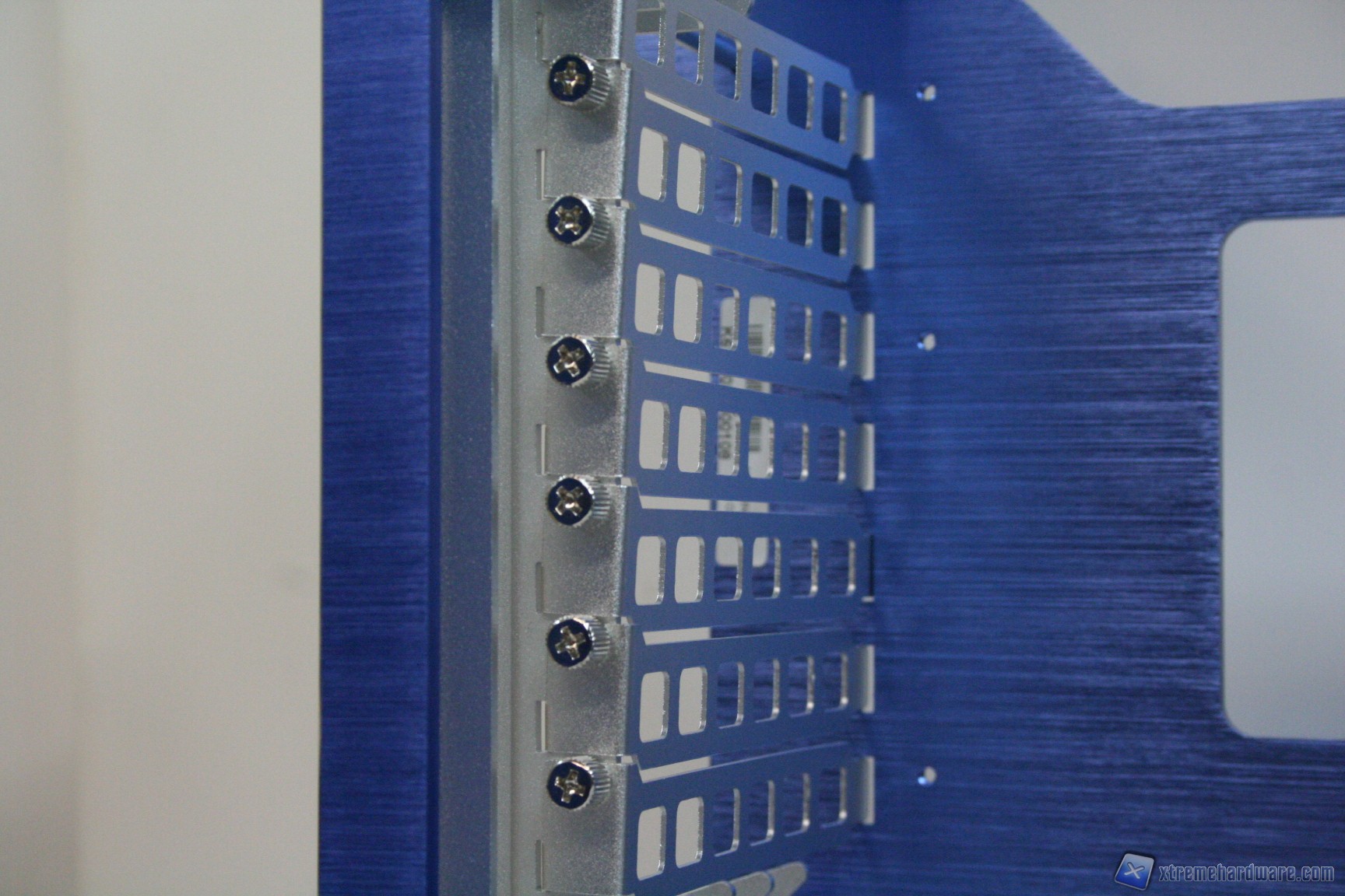 L’isolamento vibrazionale è discreto ma fa affidamento solo alle viti dedicate, sebbene comunque alla base siano presenti quattro distanziatori gommati antivibrazione. Data la rigidità complessiva del telaio potete star certi che non ci saranno problemi di sorta. Similmente all’X-Frame, se vogliamo l’isolamento vibrazionale è relativo perché solitamente si utilizzano dischi rigidi che non presentano eccessive velocità di rotazione (7200RPM vs 15000RPM SCSI). La dissipazione, sebbene non ci siano ventole dedicate, grazie alla struttura completamente aperta è buona. La rigidità delle periferiche, data la struttura in acciaio, è elevata e non è possibile configurare modularmente i cage per gli hard disk.
